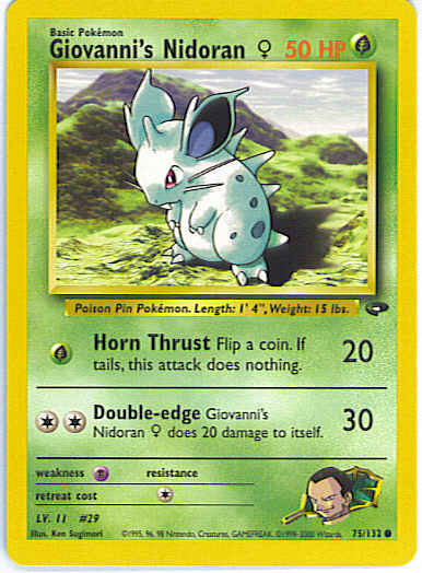 [CC] Double-edge (30) Giovanni's Nidoran F does 20 damage to itself.