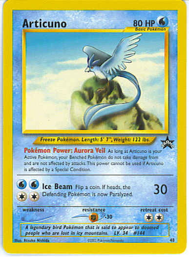 | Type | Water | | Pokemon serie | WoTC Promo | | Stadie | Basic | | HP | 80 | | Sjældenhed | Promo | | Tilbagetrækning | 2 | | Modstand | F | | Kortnummer | 48 | | Evne |