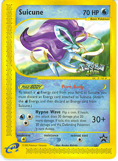 | Type | Water | | Pokemon serie | WoTC Promo | | Stadie | Basic | | HP | 70 | | Sjældenhed | Promo | | Tilbagetrækning | 1 | | Svaghed | L | | Kortnummer | 53 | | Evne |