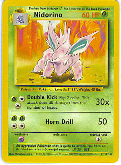 | Type | Grass | | Pokemon serie | Base | | Stadie | Stage 1 | | HP | 60 | | Sjældenhed | Uncommon | | Tilbagetrækning | 1 | | Svaghed | P | | Kortnummer | 37 | | Evne |