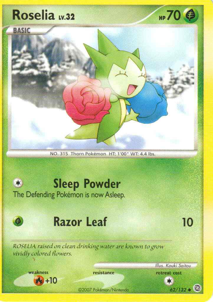 | Type | Grass | | Pokemon serie | Secret Wonders | | Stadie | Basic | | HP | 70.0 | | Sjældenhed | Uncommon | | Tilbagetrækning | 1.0 | | Svaghed | R+10 | | Kortnummer | 62 | | Evne | [C] Sleep Powder - The Defending Pokemon is now Asleep. [G] Razor Leaf (10)