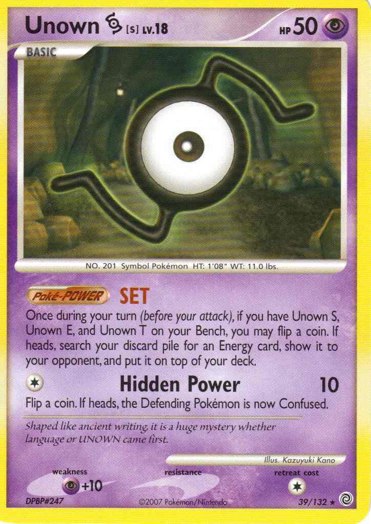 | Type | Psychic | | Pokemon serie | Secret Wonders | | Stadie | Basic | | HP | 50.0 | | Sjældenhed | Rare | | Tilbagetrækning | 1.0 | | Svaghed | P+10 | | Kortnummer | 39 | | Evne |