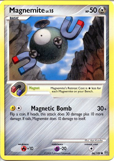 [CL] Magnetic Bomb (30+) Flip a coin. If heads, this attack does 30 damage plus 10 more damage. If tails, Magnemite does 10 damage to itself.