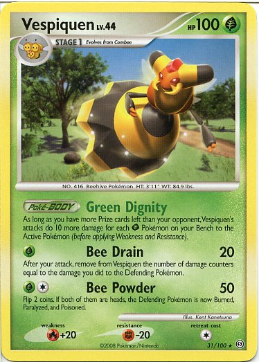 [G] Bee Drain (20) After your attack, remove from Vespiquen the number of damage counters equal to the damage you did to the Defending Pokemon.