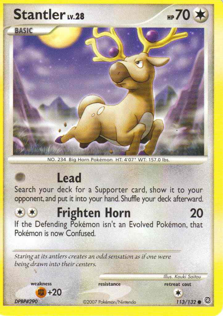 [CC] Frighten Horn (20) If the Defending Pokemon isn't an Evolved Pokemon, that Pokemon is now Confused.