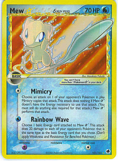 [C] Mimicry - Choose an attack of 1 of your opponent's Pokemon in play. Mimicry copies that attack. This attack does nothing if Mew * doesn't have the Energy necessary to use that attack. (You must still do anything else required for that attack.) Mew * performs that attack.