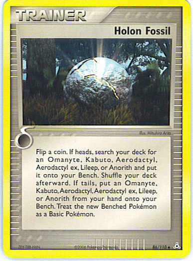 Flip a coin. If heads, search your deck for an Omanyte, Kabuto, Aerodactyl, Aerodactyl ex, Lileep, or Anorith and put it onto your Bench. Shuffle your deck afterward. If tails, put an Omanyte, Kabuto, Aerodactyl, Aerodactyl ex, Lileep, or Anorith from you