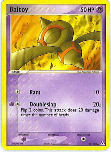 | Type | Psychic | | Pokemon serie | Holon Phantoms | | Stadie | Basic | | HP | 50 | | Sjældenhed | Common | | Tilbagetrækning | 1 | | Svaghed | P | | Kortnummer | 59 | | Evne | [C] Ram (10) [CP] Doubleslap (20x) Flip 2 coins. This attack does 20 damage times the number of heads. | | Evne2 | [C] Ram (10) [CP] Doubleslap (20x) Flip 2 coins. This attack does 20 damage times the number of heads. | | Kunstner | Naoyo Kimura |
