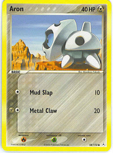 | Type | Metal | | Pokemon serie | Holon Phantoms | | Stadie | Basic | | HP | 40 | | Sjældenhed | Common | | Tilbagetrækning | 1 | | Modstand | G | | Svaghed | R | | Kortnummer | 58 | | Evne | [C] Mud Slap (10) [CM] Metal Claw (20) | | Evne2 | [C] Mud Slap (10) [CM] Metal Claw (20) | | Kunstner | Kagemaru Himeno |