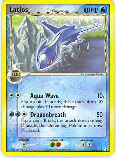 | Type | Water | | Pokemon serie | Holon Phantoms | | Stadie | Basic | | HP | 80 | | Sjældenhed | Rare | | Tilbagetrækning | 1 | | Modstand | FG | | Svaghed | C | | Kortnummer | 22 | | Evne |