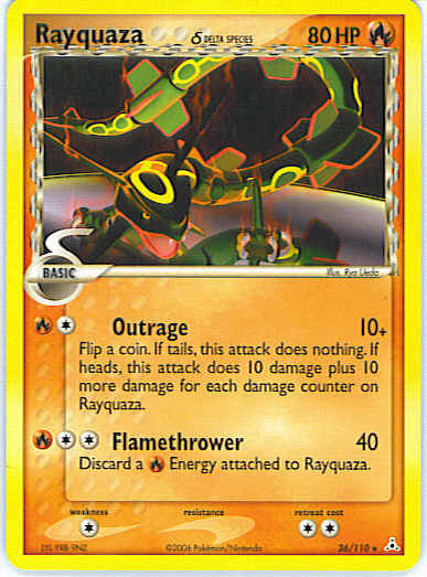 [CR] Outrage (10+) Flip a coin. If tails, this attack does nothing. If heads, this attack does 10 damage plus 10 more damage for each damage counter on Rayquaza.