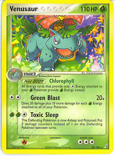| Type | Grass | | Pokemon serie | Crystal Guardians | | Stadie | Stage 2 | | HP | 110 | | Sjældenhed | Rare | | Tilbagetrækning | 3 | | Svaghed | R | | Kortnummer | 28 | | Evne |